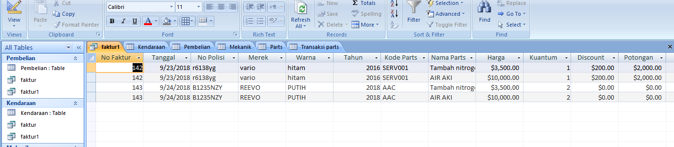 dari manual bon pembelian diatas kita dapat menjadi bentuk normal pertama dengan memisah-misahkan data pada atribut-atribut yang tepat dan bernilai atomik, juga seluruh record / baris harus lengkap adanya.